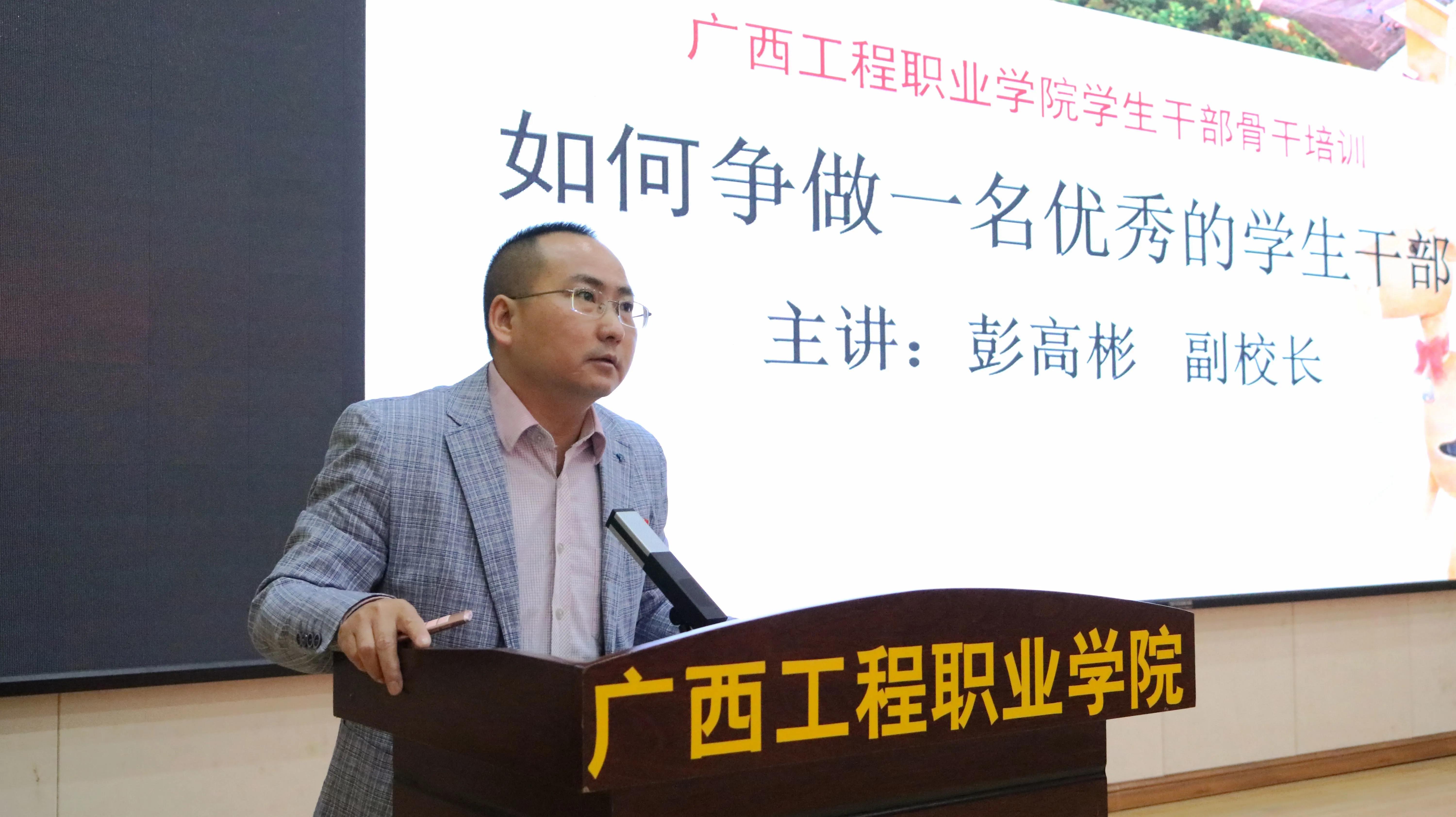彭高彬副校長在開班第一講中作題為《如何做一名優(yōu)秀的學生干部》的專題培訓。