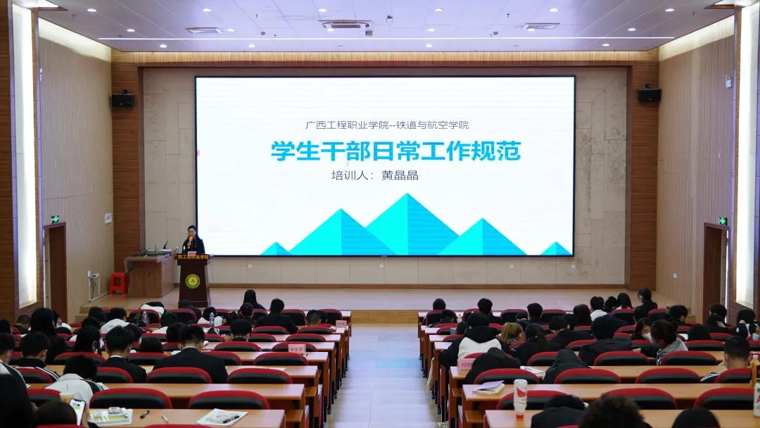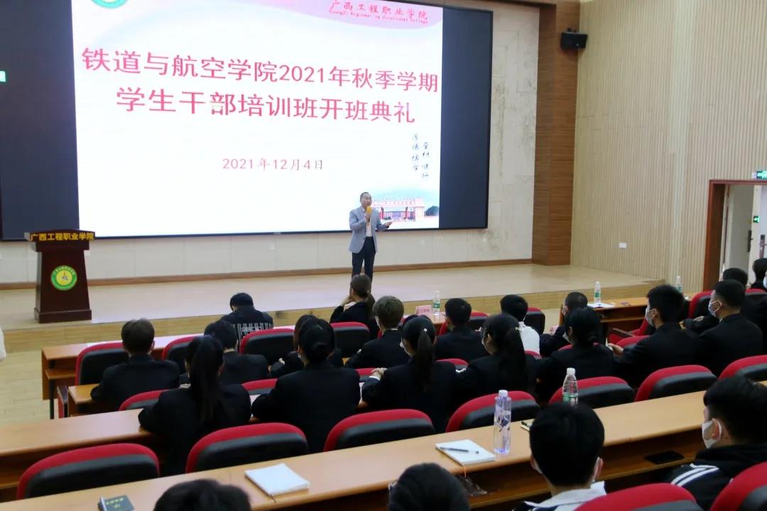 12月4日上午,學生干部培訓班開班儀式在圖文信息大樓報告廳舉行。學校黨委委員、副校長彭高彬,鐵道與航空學院黨支部書記、副院長覃鳳姣,學生科長謝小玲出席開班儀式,全體2020級、2021級學生干部參加培訓。儀式由覃鳳姣副院長主持。