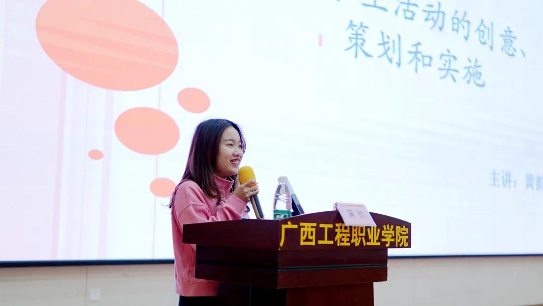 黃韻老師作題為《高校學生活動的創(chuàng)意、策劃和實施》的專題培訓,她主要圍繞高校學生活動策劃與實施、學生活動創(chuàng)新等方面展開闡述,啟發(fā)同學們要不斷提高理論知識水平和工作能力,不斷開拓創(chuàng)新,增強活動策劃能力、干事能力和應急處置能力。