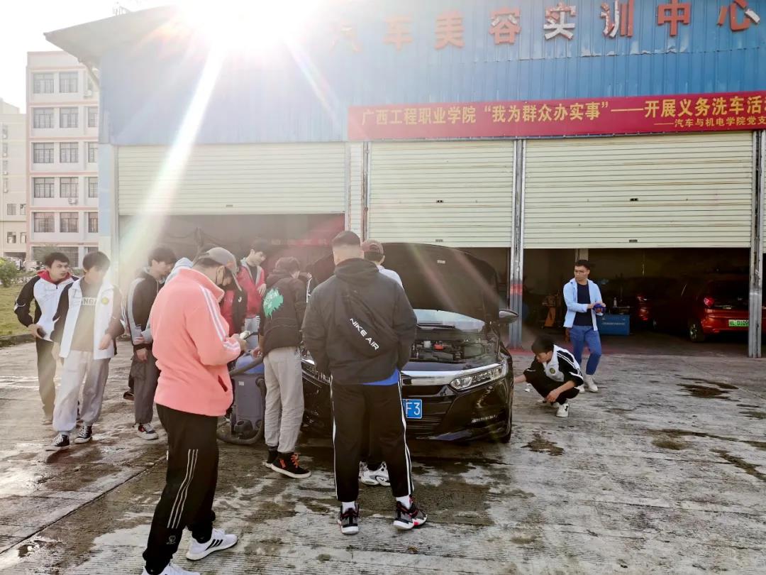 為進(jìn)一步弘揚(yáng)志愿服務(wù)精神,扎實推進(jìn)黨史學(xué)習(xí)教育“我為群眾辦實事”實踐活動,把學(xué)黨史與強(qiáng)化專業(yè)特色結(jié)合起來, 將黨史學(xué)習(xí)教育成果切實落實到實際工作中,為師生辦實事、解難題,營造文明和諧的校園。2021年12月2日,汽車與機(jī)電學(xué)院舉行“我為師生辦實事”義務(wù)洗車志愿服務(wù)活動,為學(xué)校師生免費(fèi)洗車。