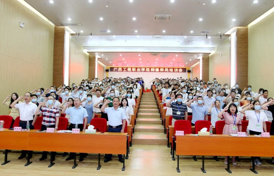 為進一步推進學校師德師風建設,落實立德樹人根本任務,著力建設一支政治素質過硬、作風優(yōu)良、品德高尚、能力過硬的教師隊伍,6月14日下午,廣西工程職業(yè)學院“強化責任擔當 認真履職盡責”師德師風培訓會在圖文信息大樓學術報告廳舉行。紀委書記、副校長彭高彬作了題為“堅持立德樹人 做四有好老師”的專題培訓。學校黨政領導班子出席培訓會,全體教職工參會,會議由黨委副書記黃秋霞主持。