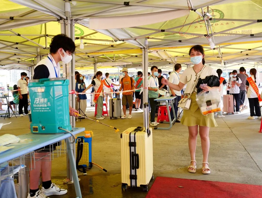 迎新期間,學(xué)校設(shè)置了校外、校內(nèi)迎新點(diǎn)和安全報(bào)到通道,要求全程佩戴口罩、測(cè)量體溫、查驗(yàn)“雙碼”、48小時(shí)內(nèi)核酸檢測(cè)陰性證明及一鍵直報(bào)等,通過(guò)安全通道后進(jìn)入校園。入校后,學(xué)校實(shí)施嚴(yán)格的“三天兩檢”制度,切實(shí)維護(hù)疫情防控下校園的穩(wěn)定和學(xué)生安全,為新生們筑起了堅(jiān)固又溫暖的抗疫防線。