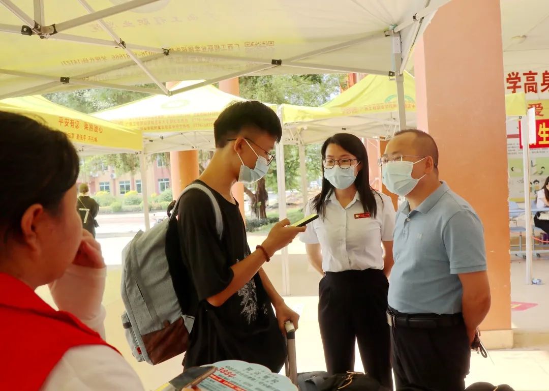 黃秋霞副書記、彭高彬書記等校領(lǐng)導(dǎo)檢查指導(dǎo)各個(gè)迎新工作點(diǎn)