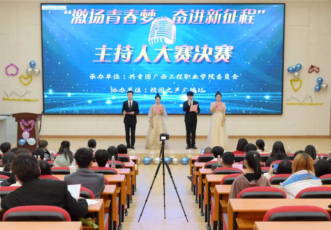 為學(xué)習(xí)宣傳貫徹黨的二十大精神,用語(yǔ)言生動(dòng)描繪新時(shí)代黨和國(guó)家取得的輝煌成就,用聲音精彩呈現(xiàn)黨和國(guó)家在推進(jìn)偉大復(fù)興新征程中的新氣象、新精神。同時(shí),為了營(yíng)造富有激情、青春的校園文化氛圍,提高學(xué)生的人文素質(zhì)和邏輯思辨、溝通表達(dá)能力,廣西工程職業(yè)學(xué)院于12月8日晚在圖文信息大樓五樓學(xué)術(shù)報(bào)告廳舉辦“激揚(yáng)青春夢(mèng),奮進(jìn)新征程”主持人大賽決賽。