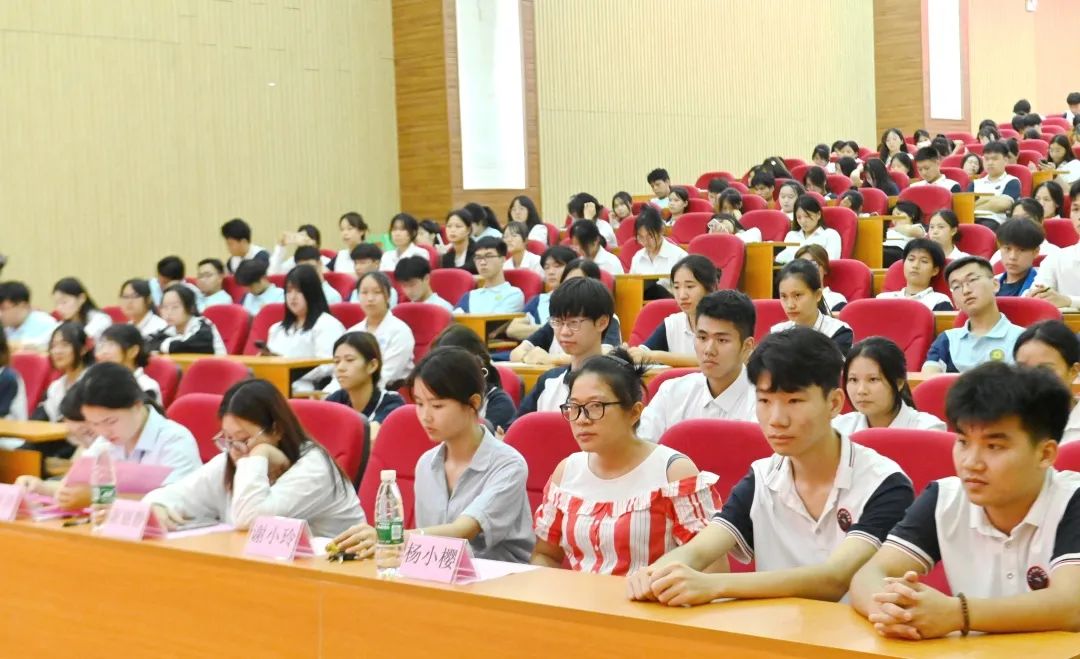 學(xué)校黨委副書記黃秋霞,黨委辦科長韋金松,校團(tuán)委副書記李麗清,各分團(tuán)委書記出席開班儀式,2023年“青馬班”全體學(xué)員參加開班儀式。