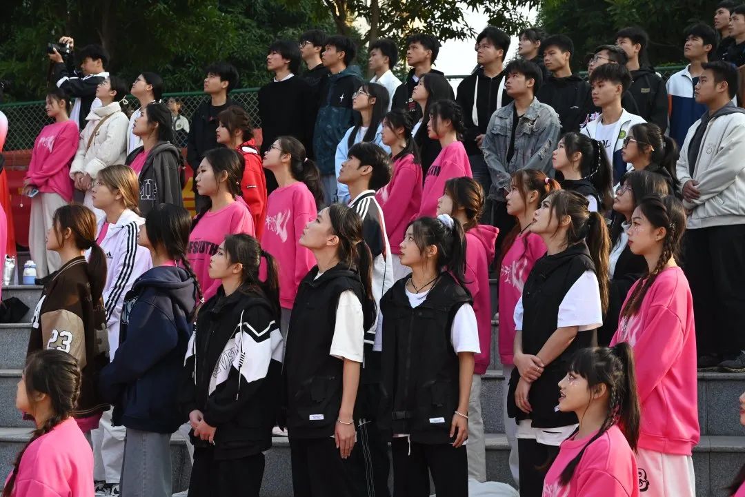 在激昂的國歌聲里,在煦日陽光下,五星紅旗冉冉升起,全體師生莊嚴(yán)肅立,望向國旗的目光盡顯赤子之心。那在風(fēng)中飄揚(yáng)的五星紅旗,也點(diǎn)燃了運(yùn)動健兒們的朝氣與熱情。