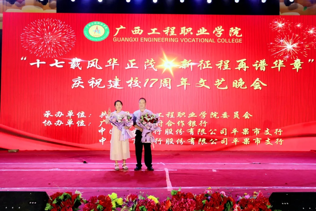 學(xué)校董事長李益宣布廣西工程職業(yè)學(xué)院“十七載風(fēng)華正茂 新征程再譜華章”建校17周年校慶文藝晚會(huì)正式開始!瞬時(shí),煙花綻放,禮炮響起,整個(gè)學(xué)校成了歡樂的海洋,氣氛祥和喜慶。