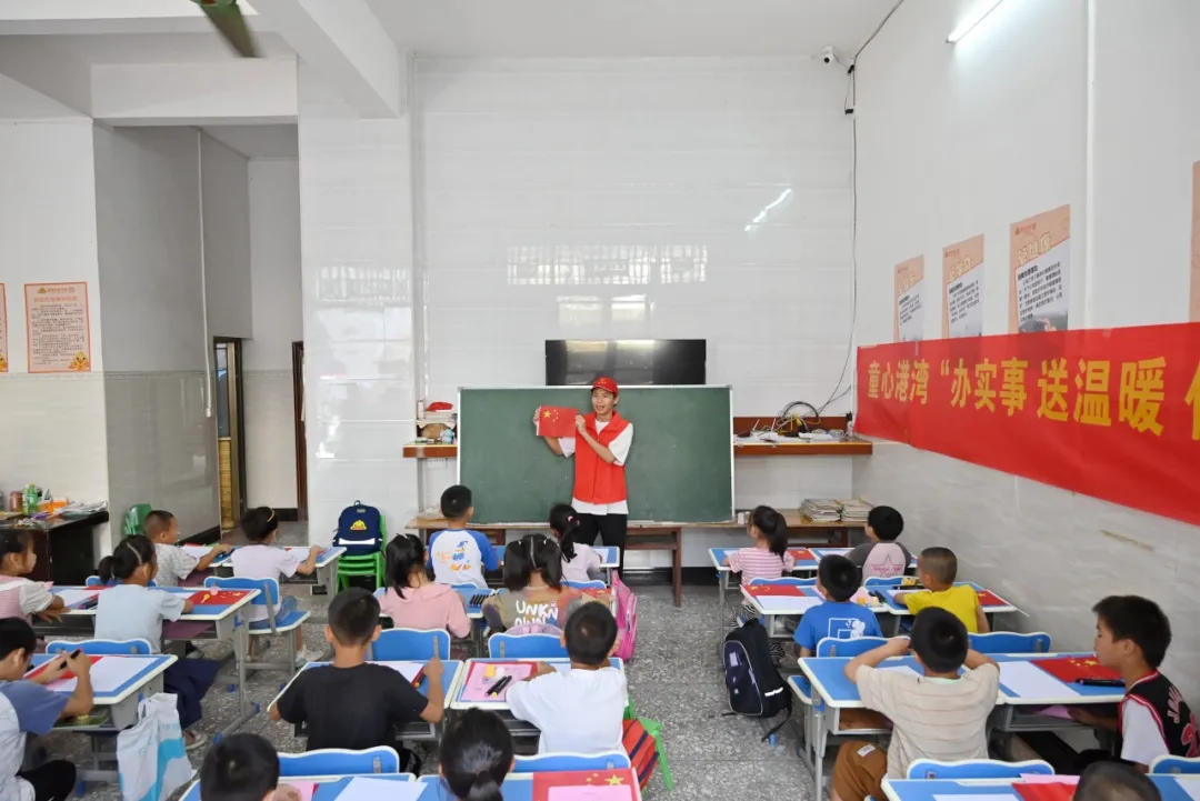 實踐團、服務(wù)團成員開展了“童心港灣‘辦實事 送溫暖 傳真情’”主題活動。活動中,志愿者們教小孩子唱歌、朗誦、畫畫,以《歌唱祖國》《我愛祖國》等為主題,慶祝今年新中國成立75周年,增強孩子們的愛國意識;同時還給孩子們送上五顏六色的文具、水杯、雨傘、糖果、筆記本等愛心紀(jì)念品,整個活動充滿歡聲笑語。
