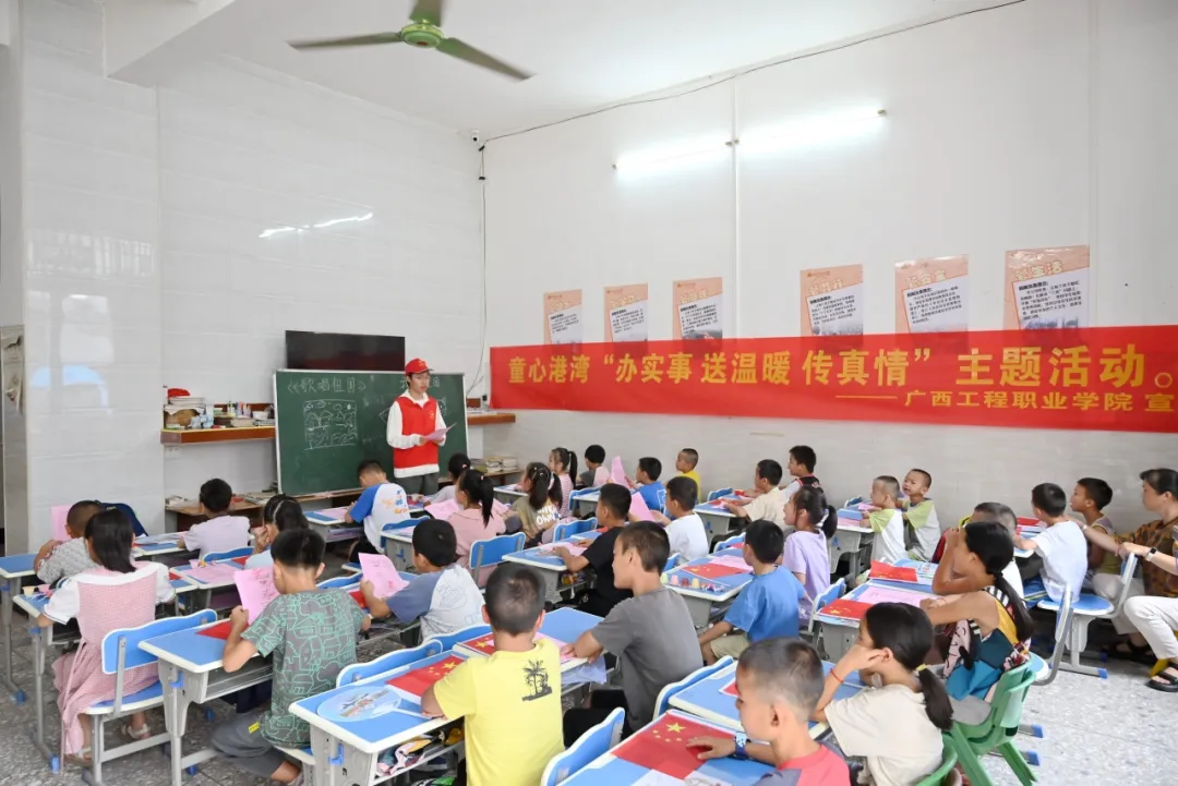 2024年7月16日,廣西工程職業(yè)學(xué)院“傳承紅色基因,勇?lián)鷷r代使命”實踐團、“青年先鋒隊,基層實踐行”服務(wù)團走進河池市東蘭縣武篆鎮(zhèn),開展“追尋紅色足跡 汲取奮進力量”等愛國主義教育活動和“童心港灣‘辦實事 送溫暖 傳真情’”等特色實踐服務(wù)活動。