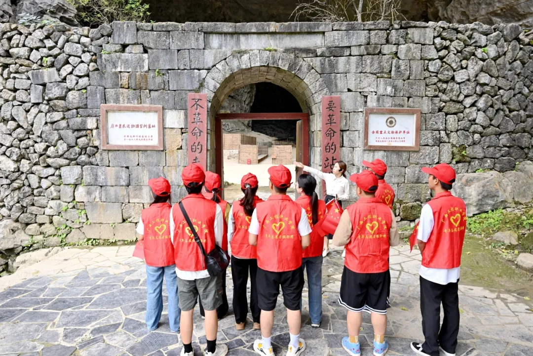 實踐團和服務(wù)團成員在講解員的帶領(lǐng)下,先后到廣西農(nóng)民運動講習(xí)所舊址列寧巖、韋拔群故居、中共紅七軍前委舊址魁星樓等地參觀學(xué)習(xí),追憶革命先輩,重溫革命歲月,接受革命精神洗禮,深刻感受了革命先烈為新中國勝利所付出的艱辛和犧牲,堅定了理想信念,強化了青年使命擔(dān)當(dāng)。大家參觀后,感慨萬分。在列寧巖,被革命先烈在這艱苦的條件下奮勇斗爭的精神所折服。在韋拔群故居,回顧這位中國早期著名農(nóng)民運動領(lǐng)袖領(lǐng)導(dǎo)人的光輝奮斗歷程,為英雄不幸犧牲而悲痛惋惜;感受到了韋拔群等先烈在如此簡陋的環(huán)境下,克服重重困難,堅持革命,為廣西農(nóng)民運動和革命事業(yè)作出了巨大貢獻。在魁星樓,大家了解到了老一輩無產(chǎn)階級革命家鄧小平和張云逸等同志驚天動地的豐功偉績,深刻感受到了先烈們?yōu)楦锩鼊倮宫F(xiàn)的堅定不移的革命理想信念。
