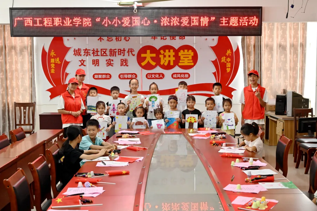 今年是新中國成立75周年,為了進(jìn)一步弘揚(yáng)愛國主義精神,踐行社會主義核心價(jià)值觀,2024年7月19日,廣西工程職業(yè)學(xué)院“青年先鋒隊(duì),基層實(shí)踐行”服務(wù)團(tuán)、“傳承紅色基因,勇?lián)鷷r(shí)代使命”實(shí)踐團(tuán)到平果市馬頭鎮(zhèn)城東社區(qū)開展“小小愛國心 濃濃愛國情”“巧手繪初心 彩畫頌黨恩”“中華民族一家親 同心共筑中國夢”等特色實(shí)踐服務(wù)活動。