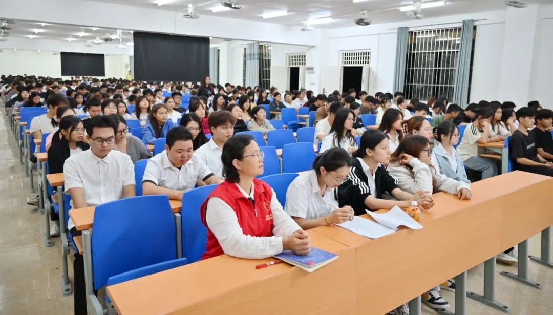 為弘揚(yáng)無私奉獻(xiàn)的精神,增強(qiáng)師生的社會(huì)責(zé)任感,普及獻(xiàn)血相關(guān)知識(shí),2024年11月6日,學(xué)校在經(jīng)管樓開展“無償獻(xiàn)血·播種大愛”主題無償獻(xiàn)血知識(shí)宣講活動(dòng),百色市中心血站服務(wù)科鄭寧醫(yī)生作專題宣講。各二級(jí)學(xué)院2024級(jí)新生代表參加了宣講活動(dòng)。