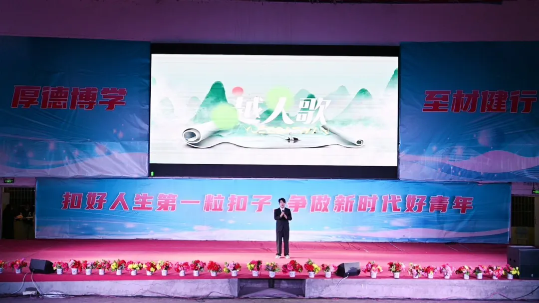 副校長黃德偉致辭。他表示,“三月三” 是廣西多民族共有的傳統(tǒng)節(jié)日,承載著深厚歷史文化與民族情感,是廣西特色文化象征。民歌作為民族文化瑰寶,傳遞著民族情感與智慧,彰顯了團結(jié)和諧。此次校園好聲音比賽,是展示自我的舞臺,更是傳承文化的橋梁。借由歌聲,我們追溯文化根脈,汲取奮進之力,讓優(yōu)秀文化煥發(fā)新光彩。同學(xué)們作為新時代青年,是文化傳承新生力量,站在舞臺上歌唱,便已是文化傳承使者。希望大家在舞臺上盡情發(fā)揮,用歌聲感染聽眾,展現(xiàn)民族文化魅力與民族團結(jié)偉力。