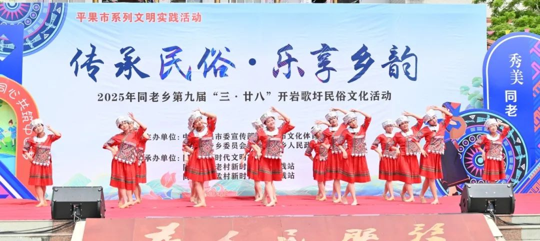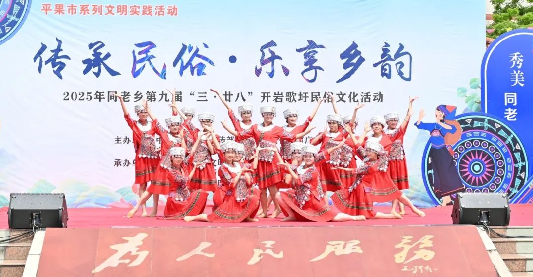 2025年4月25日,廣西工程職業(yè)學(xué)院學(xué)子參加平果市同老鄉(xiāng)舉辦的第九屆“三·廿八”開巖歌圩民俗文化活動,并帶來精彩的節(jié)目表演。他們與當(dāng)?shù)卮迕颀R聚一堂,以歌會友、以舞傳情,共同奏響民族團(tuán)結(jié)的和諧樂章,繪就一幅各族同胞交融共生的動人畫卷。