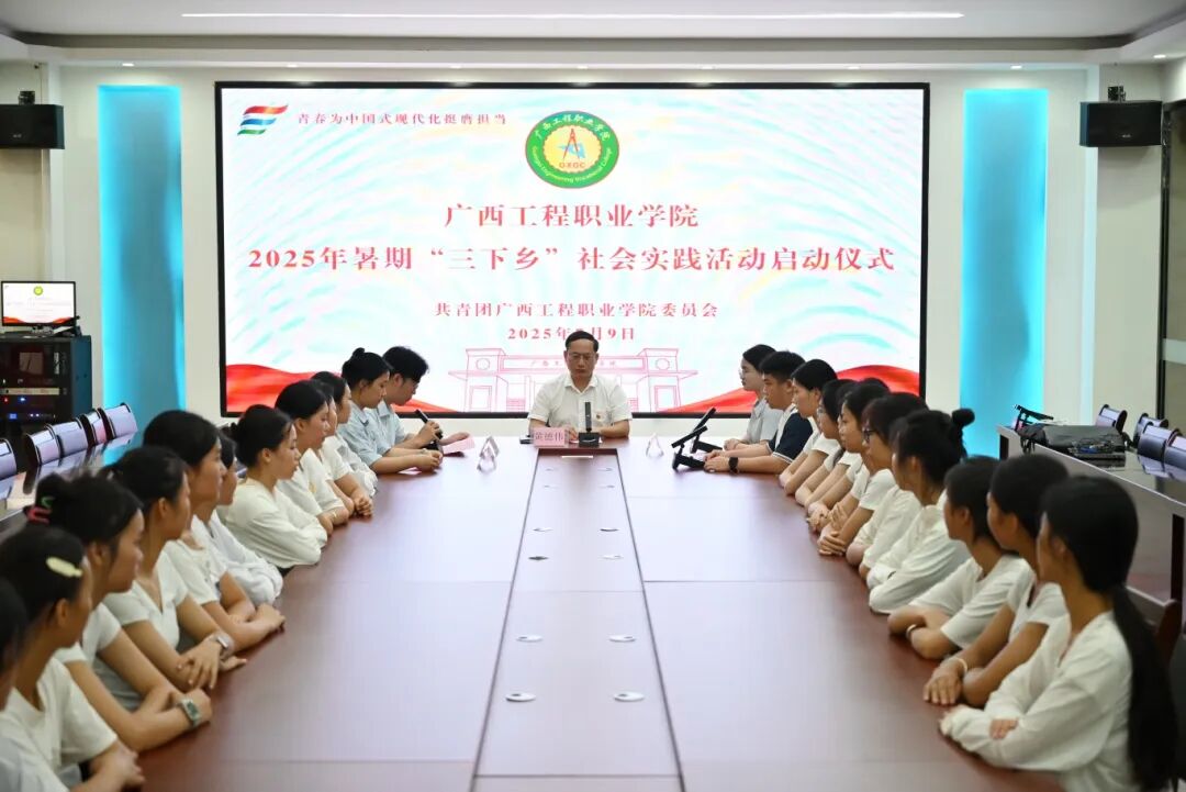 廣西工程職業(yè)學(xué)院2025暑期“三下鄉(xiāng)”社會實(shí)踐活動啟動儀式在雄壯激昂的國歌聲中拉開序幕。
