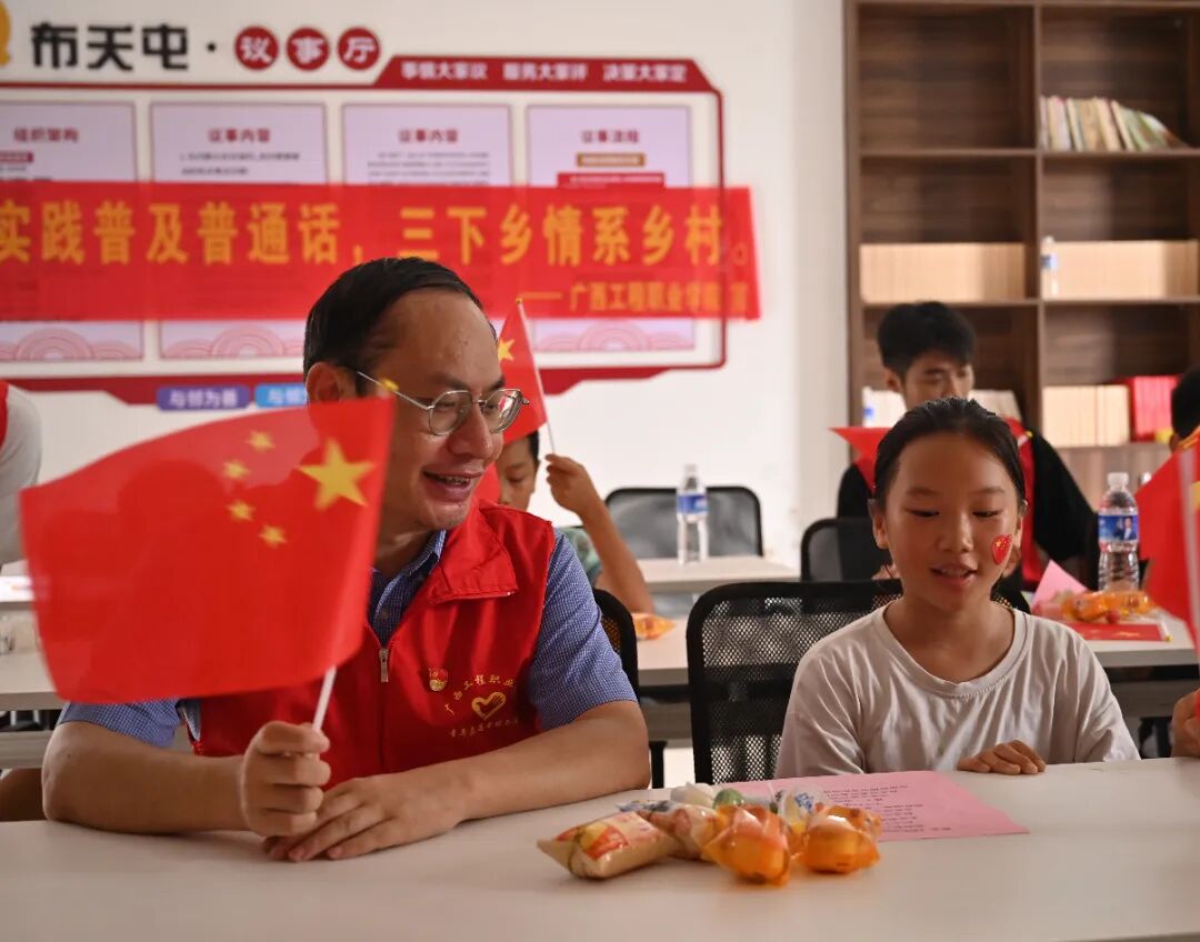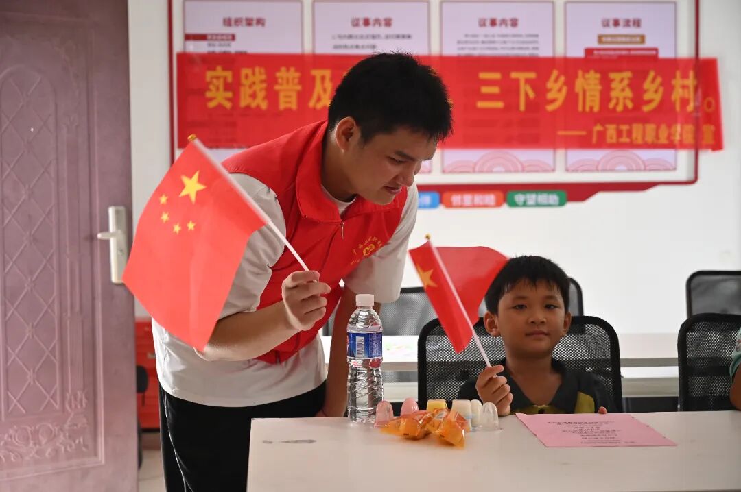 2025年7月14日,廣西工程職業(yè)學(xué)院“紅色研學(xué)踐初心·青春聚力促振興”實(shí)踐團(tuán)、廣西工程職業(yè)學(xué)院“青春先鋒行,筑夢(mèng)在基層”服務(wù)團(tuán)走進(jìn)平果市馬頭鎮(zhèn)布夭屯開展“七彩畫筆繪鄉(xiāng)村,三下鄉(xiāng)情暖童心 ”等特色暑期“三下鄉(xiāng)”社會(huì)實(shí)踐活動(dòng)。通過“田間課堂”“童聲頌祖國”等特色活動(dòng)的開展,將語言文化教育與勞動(dòng)實(shí)踐相結(jié)合,為鄉(xiāng)村兒童帶來豐富多彩的活動(dòng),以實(shí)際行動(dòng)助力鄉(xiāng)村文化振興。