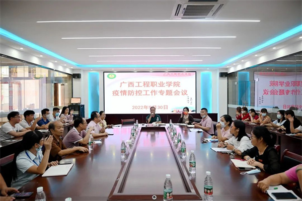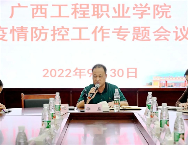 2022年9月30日,廣西工程職業(yè)學(xué)院召開國(guó)慶節(jié)前疫情防控與安全穩(wěn)定工作會(huì),傳達(dá)自治區(qū)、百色市及屬地關(guān)于國(guó)慶節(jié)前疫情防控和安全穩(wěn)定有關(guān)會(huì)議和文件精神,部署學(xué)校國(guó)慶期間疫情防控和安全穩(wěn)定有關(guān)工作。會(huì)議由李益董事長(zhǎng)主持,黨委副書記黃秋霞,副校長(zhǎng)羅妮、吳先夏、黃德偉,校長(zhǎng)助理蔣茂麗,校屬各單位負(fù)責(zé)人及科長(zhǎng)參加了會(huì)議。