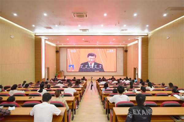 學校線下集中觀看的主要會場分別在圖文信息大樓報告廳、圖書館學術報告廳以及各個二級學院會議室。學校黨委副書記黃秋霞,紀委書記、副校長彭高彬,副校長羅艷妮、黃德偉,校長助理蔣茂麗等校領導與師生代表一起觀看了大會直播。未能到場的師生也紛紛通過廣播、電視、網(wǎng)絡等收聽收看會議盛況。
