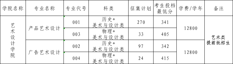 一、藝術(shù)提前批最低投檔分數(shù)線及征集計劃一覽表